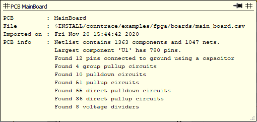 FPGA pins with the same pin name and connected to the same net are now imported as a single net (with multiple pins connected). This reduces the number of nets created for an FPGA and thus improves performance. A pin label is added for power and ground pins. For Xilinx FPGAs the ‘...power_routed.rpt’ file is now processed to extract additional voltage information.